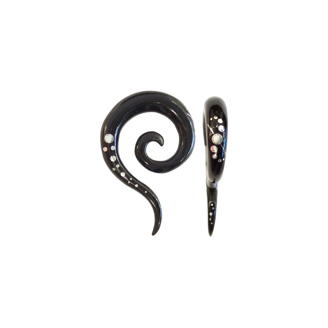 Black Horn Tail Spirals with Silver and Mother of Pearl Inlays